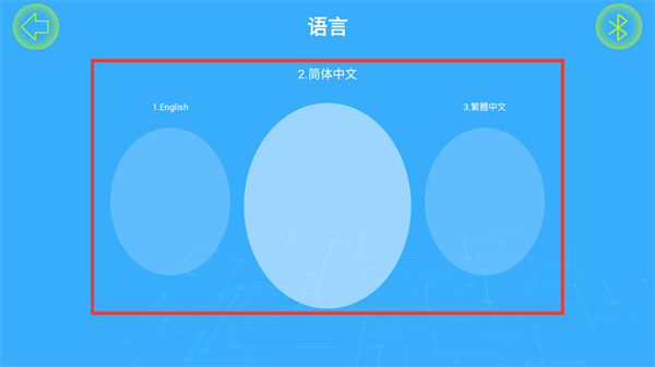 4、进入【语言】选择页面,有【English】【简体中文】【繁體中文】选项,点击对应选项即可完成界面语言的切换。
