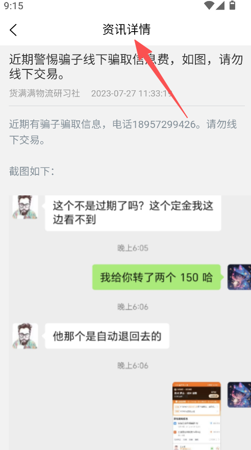 1、资讯内容贴合货运实际需求,含诈骗提醒等实用信息,增强用户在货运交易中的风险防范意识。