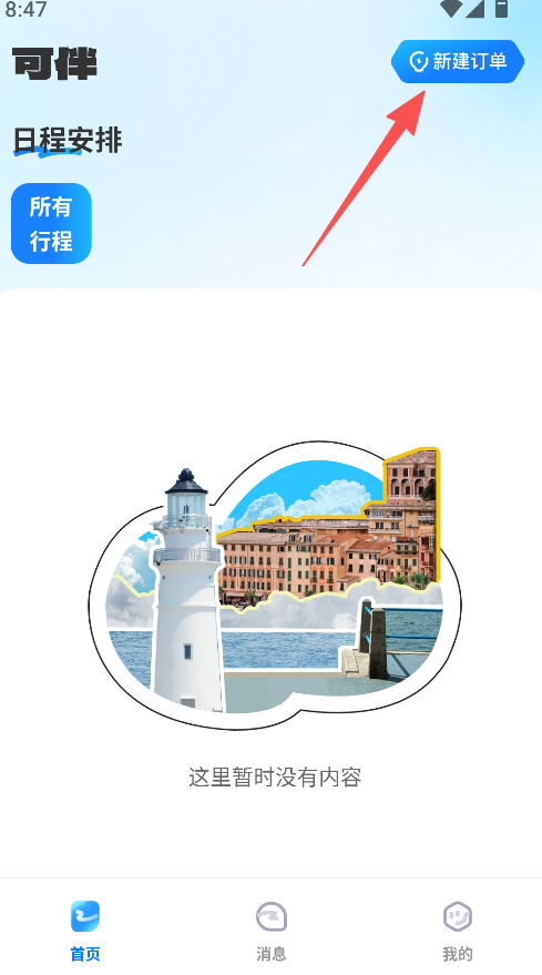 1、具备订单创建功能,打开软件点击首页的新建订单按钮,发起服务订单的创建操作。