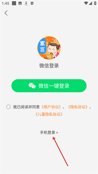 3、进入登录页面,点击【手机登录】按钮,切换至手机号登录的方式。