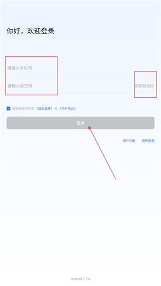 2、在登录界面,输入手机号后点击【获取验证码】,填入收到的验证码,勾选协议后点击【登录】完成验证登录。