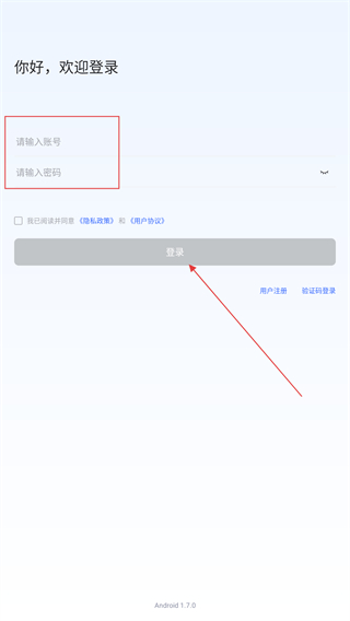 4、选择密码登录方式时,在对应界面输入账号和密码,勾选协议后点击【登录】完成账号登录。