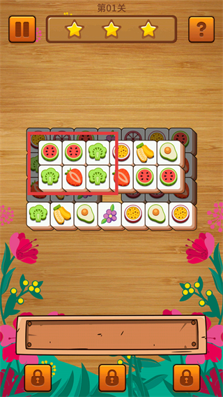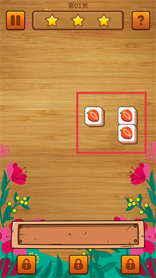 2、进入【第01关】,观察网格内的【水果方块】,找到相同图案的方块准备消除。