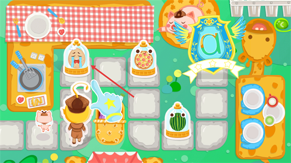 1、进入拼音学习界面,点击【a】对应的带翅膀甜甜圈,开启该拼音的学习预备环节。