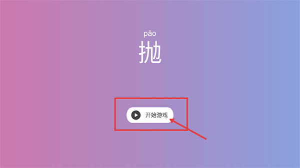 1、看到显示“抛”的界面,点击红色框选的【开始游戏】按钮,进入与“抛”相关的关卡,开启本次操作类游戏的挑战环节。