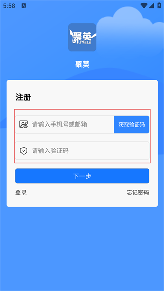 3、在注册页面,先在“请输入手机号或邮箱”框填写信息,再点击【获取验证码】,将收到的验证码填入“请输入验证码”框。