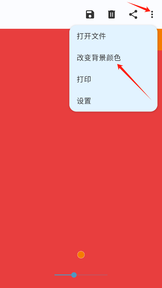 1、进入APP,点击右上角的三点按钮,点击改变背景颜色。
