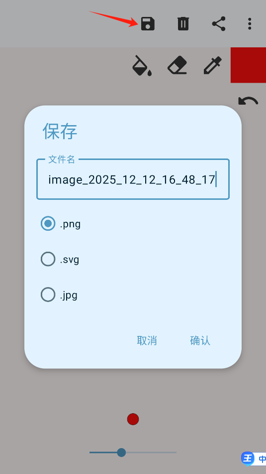 3、点击上方的这个按钮,可以将画好的画作,更名保存起来。