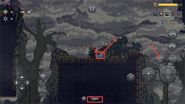3、遇到可交互物品时,靠近后触发【Open】操作,开启道具容器以获取其中的资源或道具。