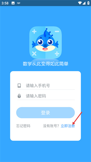1、在该数学软件的登录页面,点击“【没有账号?立即注册】”按钮,进入账号注册页面,准备填写注册相关信息。