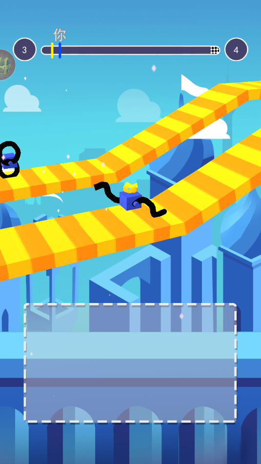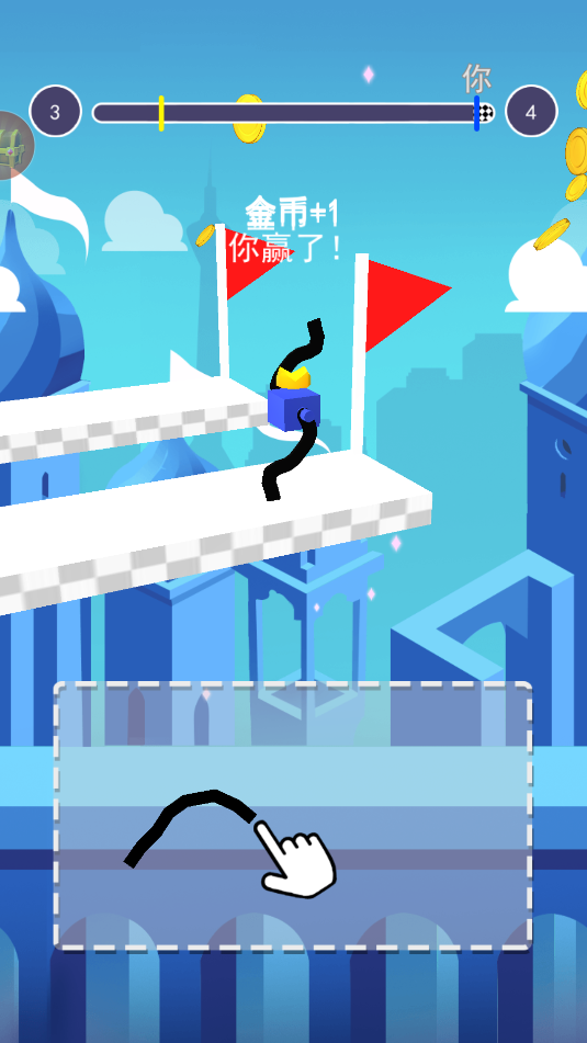 1、游戏中,在下面的框子里画出一条曲线,赛道上的小机器人就会长出两条腿。