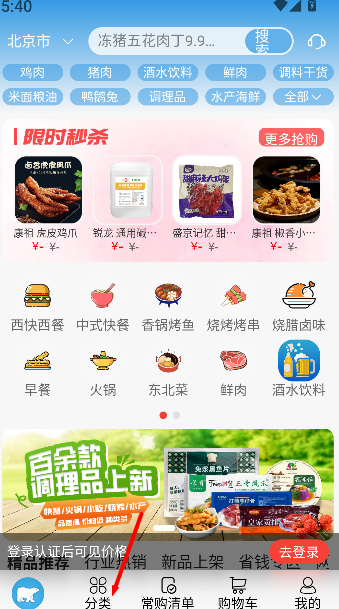 1、打开软件首页,浏览各类冷冻食品分类,查看商品详情和价格信息。