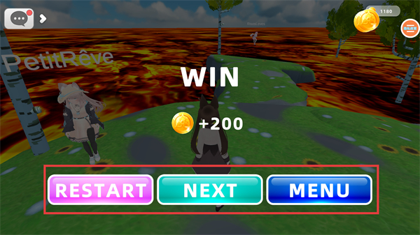 4、对局胜利后,可选择【RESTART】重开、【NEXT】进入下一局或【MENU】返回主界面。
