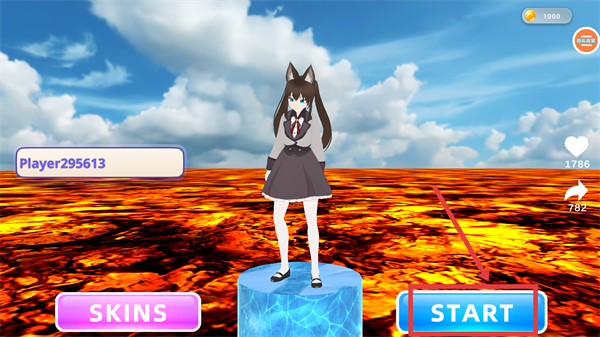 1、点击【START】按钮,进入游戏,可先通过【SKINS】更换角色外观,再开启对局。