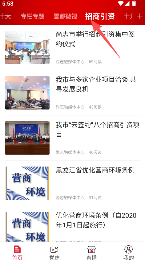 1、设有招商引资板块,点击进入后可浏览尚志项目签约、洽谈等相关的本地资讯内容。