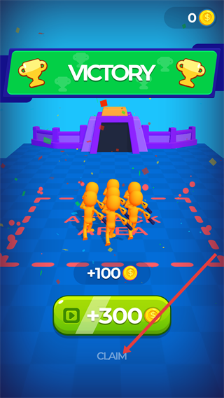 4、战斗获胜后,在显示【VICTORY】的结算界面中,点击【CLAIM】按钮领取对应奖励,完成当前关卡的流程。
