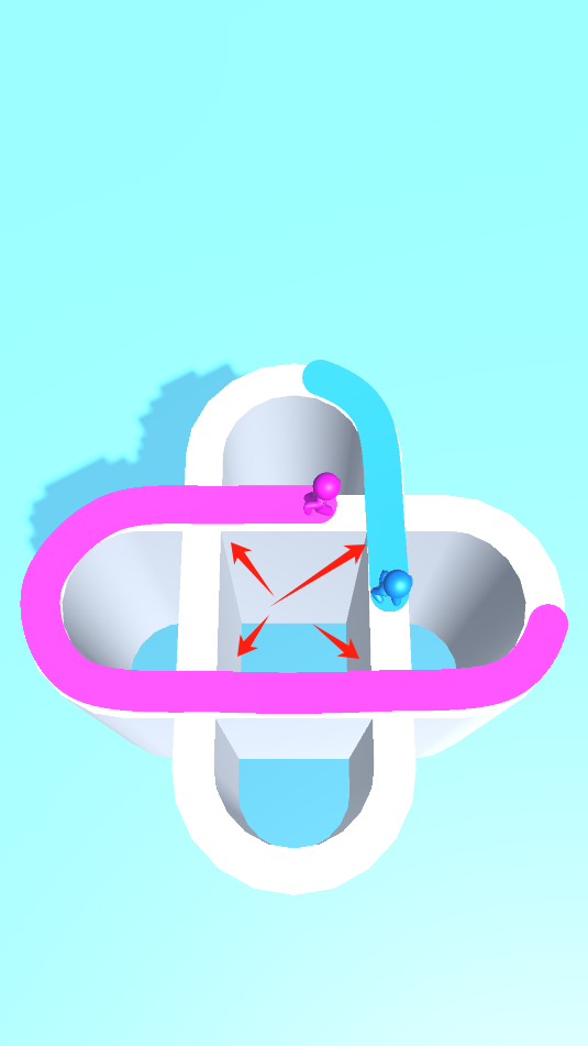 2、点击屏幕,游戏开始,先让粉色小人先跑3秒,再按住屏幕蓝色小人再跑,避免两人在交汇点相撞。