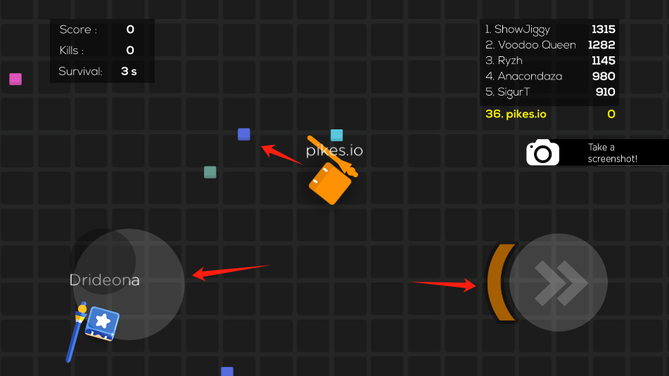 3、角色遇到其他对手,需用长枪触碰敌方的身体来获得分数,要避免被其他角色触碰到自己。