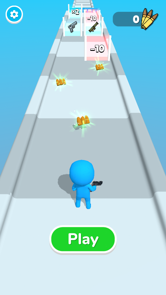 2、滑动屏幕控制角色选择武器,向增加数字的门移动。