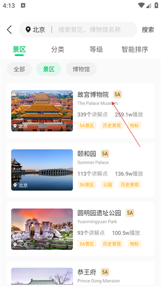 2、在景区列表中,选择目标景区(如【故宫博物院】),进入该景区详情页。