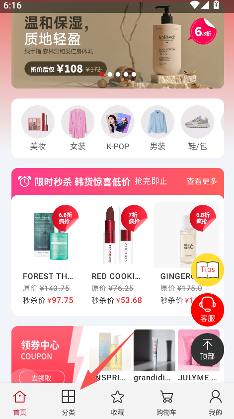 2、支持分类筛选功能,进入分类板块,选择对应品类查找目标商品内容。
