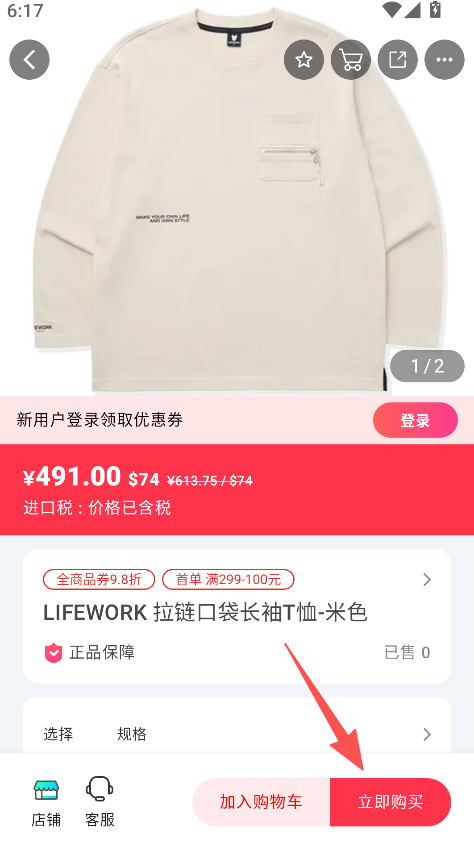 3、商品详情页呈现价格税等信息,配备购买功能,完善购物交易的全流程维度。