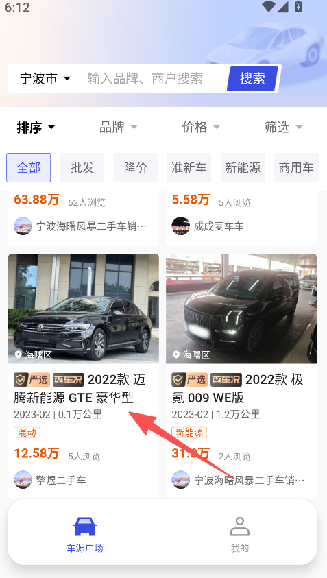 1、进入车源广场板块。