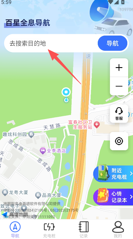 3、含附近充电桩查询心情记录本功能,拓展导航服务外的辅助功能维度。