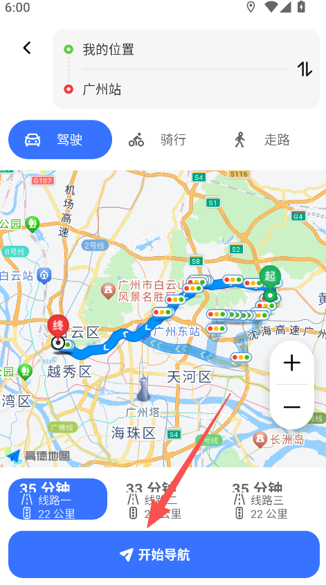 3、实现实时导航功能,点击开始导航,获取出行过程中的实时路线指引。