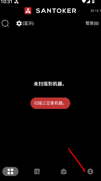 1、打开《SANTOKER烘豆帮》,点击首页头像进入个人中心,查看个人信息和操作选项。