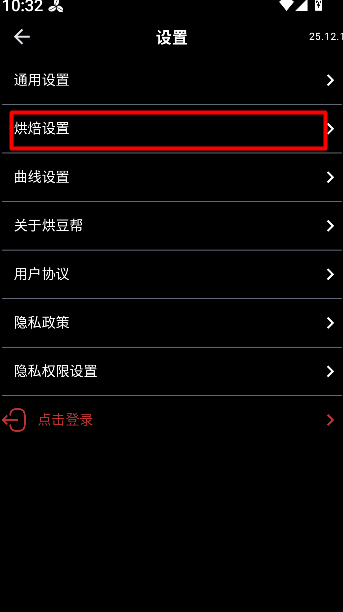 3、进入设置后选择烘焙设置,查看或修改烘豆参数,便于控制烘焙过程和效果。