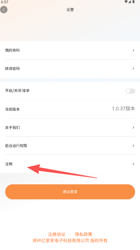 2、在设置页面中向下滑动,找到并点击“注销”进入。