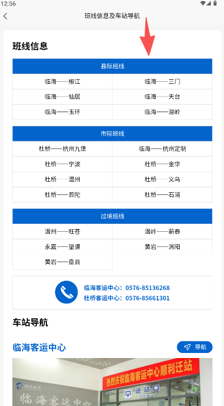 2、在界面点击“班线信息及车站导航”选项。