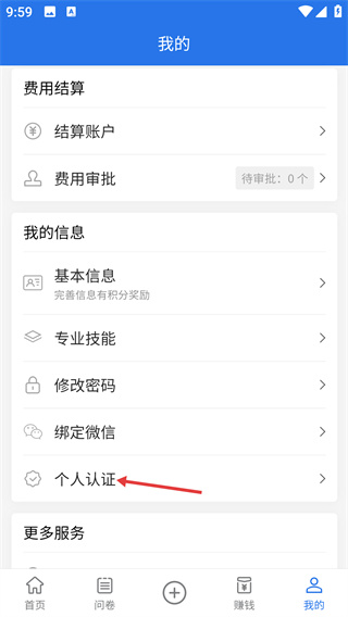 3、在【我的】页面,找到【个人认证】选项,点击进入认证流程。