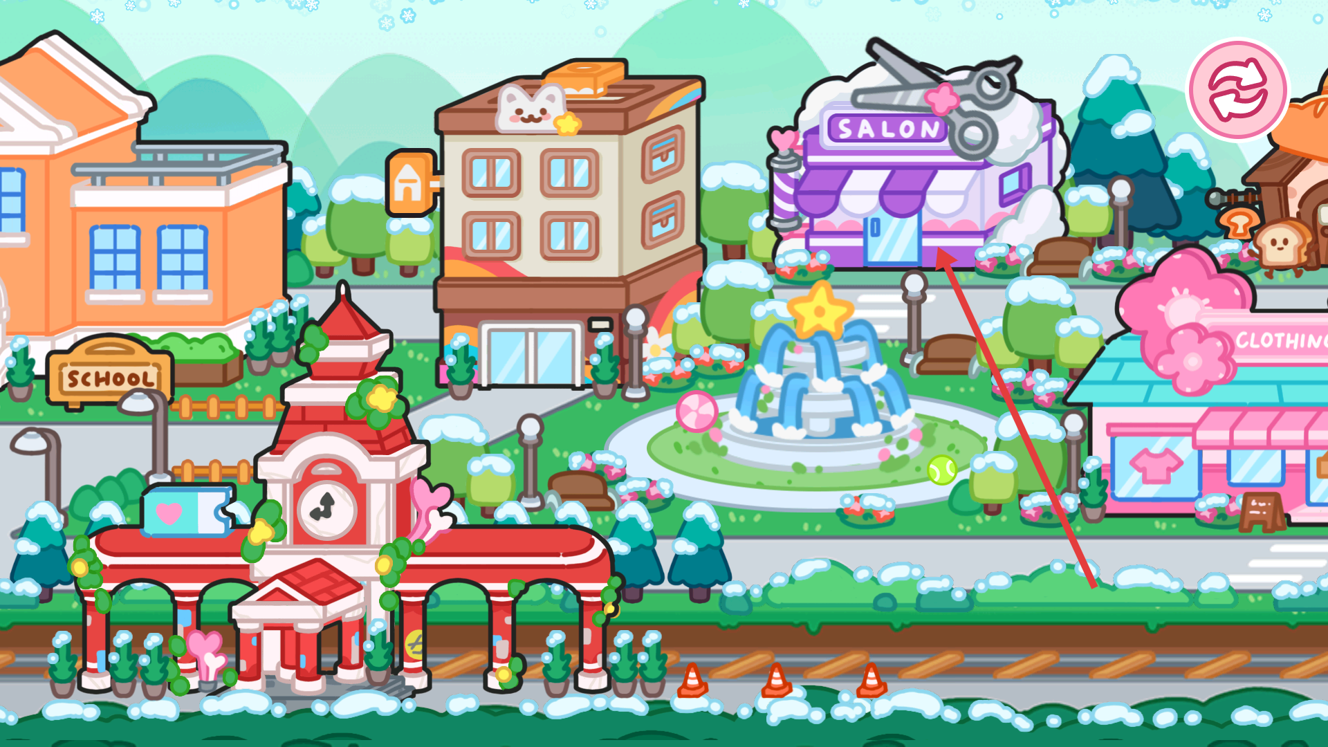 1、在场景中找到标有【SALON】的店铺并点击进入,可开启角色美发相关的互动流程。