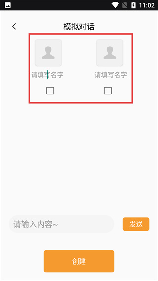 3、进入【模拟对话】界面,在【请填写名字】输入框填写信息,勾选对应选项,完成对话主体的配置。