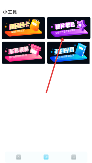 2、在小工具页面中,点击【照片取色】选项,进入我的相册选择界面。