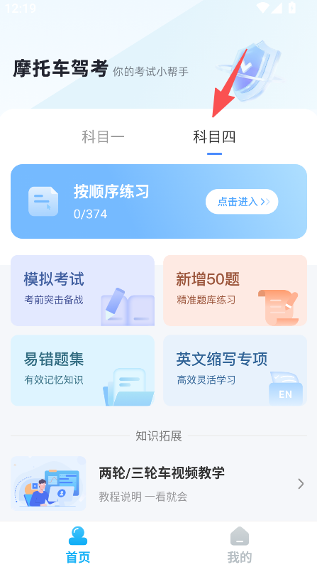 1、打开首页,选择科目四板块,进入对应练习页面。