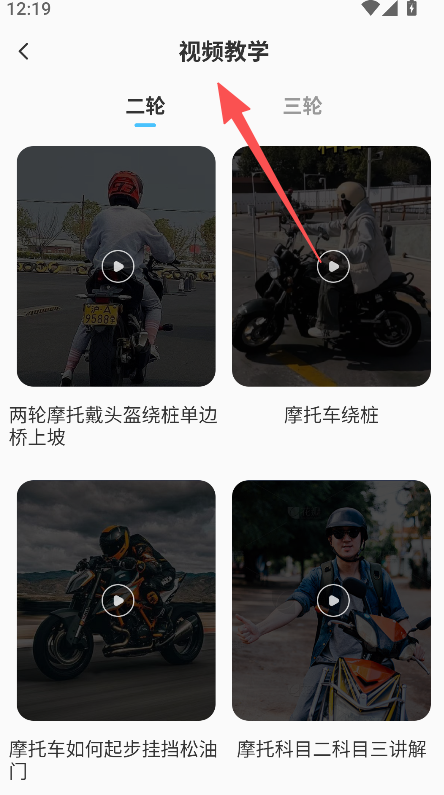 2、支持两轮三轮视频教学功能,选择对应分类,观看驾考实操项目的教学视频。