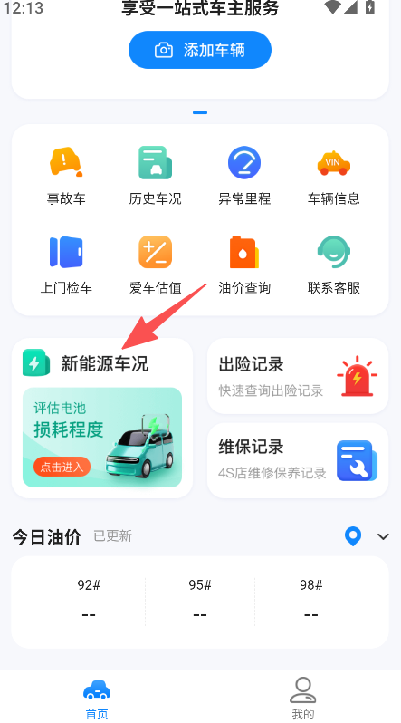 1、打开首页,点击添加车辆按钮进入对应页面。