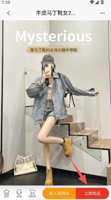 3、点击目标商品进入详情页面,点击立即买完成商品购买操作。