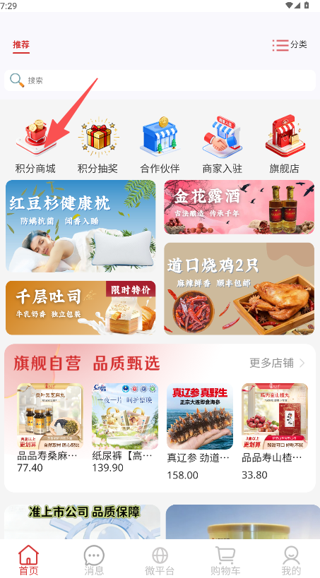 1、功能入口直观清晰,首页功能区明确展示积分商城、我的积分等核心功能模块,便于快速访问。