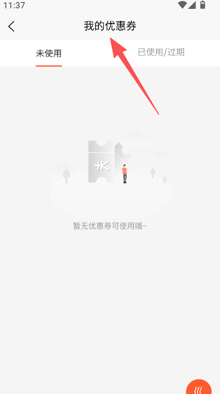 3、返回我的页面点击我的优惠券选项,查看未使用的优惠券内容。