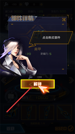 3、根据提示点击【解锁】按钮,完成部件的购买与获取。