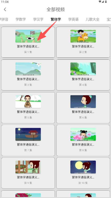 3、在“全部视频”分类中选择“繁体字通俗演义”系列视频观看。