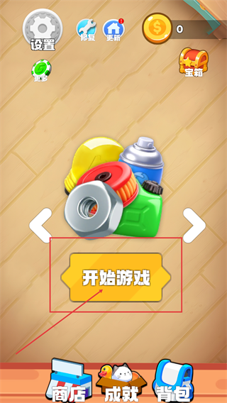 1、点击【开始游戏】-按钮启动流程,同时留意界面的【设置】-【修复】-【更新】-【商店】-【成就】-【背包】等功能入口备用。