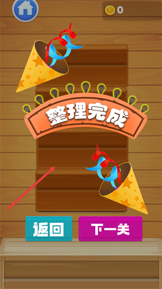 4、看到【整理完成】-提示后,可选择【下一关】-按钮继续挑战新的整理任务,或点击【返回】-按钮回到之前界面。