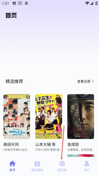 1、进入首页后,点击底部【播放器】选项,进入播放器的功能界面。