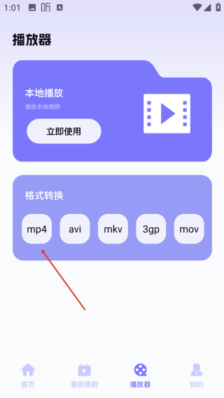 2、在播放器页,点击【mp4】格式选项,进入选择视频的操作页面。