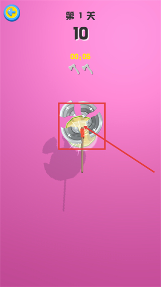 3、在【第1关】中,操控道具击碎目标圆盘,成功破坏后可积累分数并推进关卡进度。